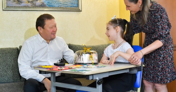 Халықаралық балаларды қорғау күні аймақ басшысы Құмар Ақсақалов Аружан мен Софьяның үйіне арнайы барып, мерекемен құттықтады.