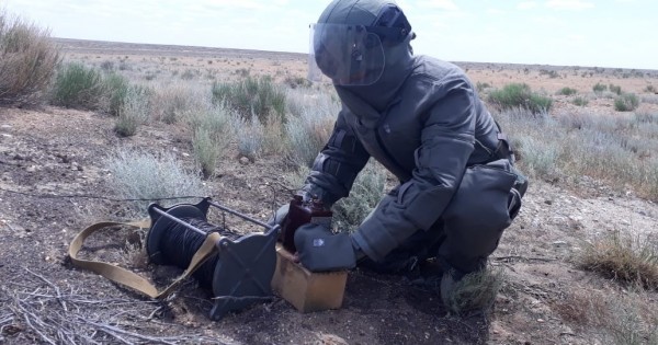 - Кеңес дәуірінде соңғы үлгідегі әскери техниканы және қару-жарақты зерттеу және сынау, жауынгерлік атыс жүргізу үшін қолданылған, Ембі полигонының жақындығы әлі күнге дейін "тосынсыйлар" ұсынады, - дейді 30238 әскери бөлімнің минасыздандыру тобының командирі, майор Аслан Баймагамбетов, - табылған снаряд кеңес дәуіріне тиесілі деп ойлаймын.