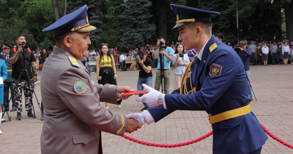 – Бүгін сіздер офицер погонын тағып, жоғарғы әскери оқу орнын бітіргені туралы дипломға ие болдыңыздар. Нағыз ер азаматтарға тән мамандықты таңдаған соң намыс туын биікте ұстап, «қазақстан әскерінің офицері» деген жоғары атқа лайық боласыздар деген сенімдемін, - деді РЭжБӘИИ-дің бастығы генерал-майор Асқар Мұстабеков.
