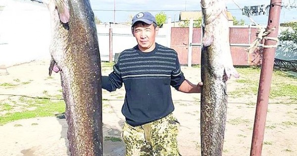 Осыдан бірер жыл бұрын 45 кило, 90 кило жайын ұстап, рекорд қойған болатын. Енді міне, Аслан Жайынов рекордын жаңартпаса да тағы мәрте жайын ұстап отыр. Бұл жолы екеуін қатарынан ұстаған. Суреттен көріп отырғандарыңыздай үлкені – 65 кило, ал кішісі – 20 кило салмақ тартқан.