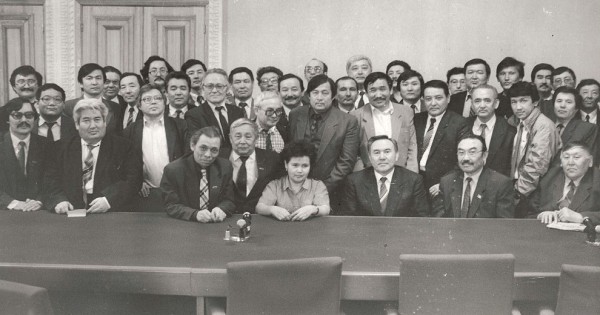 Суретте: Шерхан Мұртаза «коман­дасы» Елбасы қабылдауында. 6 сәуір 1991 жыл. Алматы