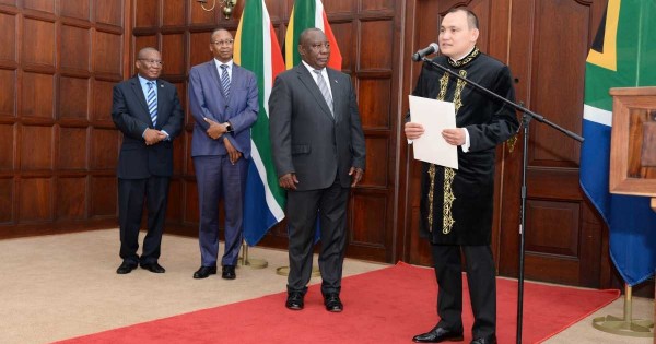 Президент С.Рамапоза оңтүстік африкалық тараптың екі мемлекет үшін де басымдықты бағыттары бойынша елімізбен экономикалық серіктестікті, саяси сұхбат пен ынтымақтастықты жан-жақты дамытуға ниетін білдірді және достас Қазақстанның басшылығына ыстық сәлемін жолдап, Елші Қ.Тумышқа әлемнің осы бөлігіндегі дипломатиялық қызметте табыс тіледі.