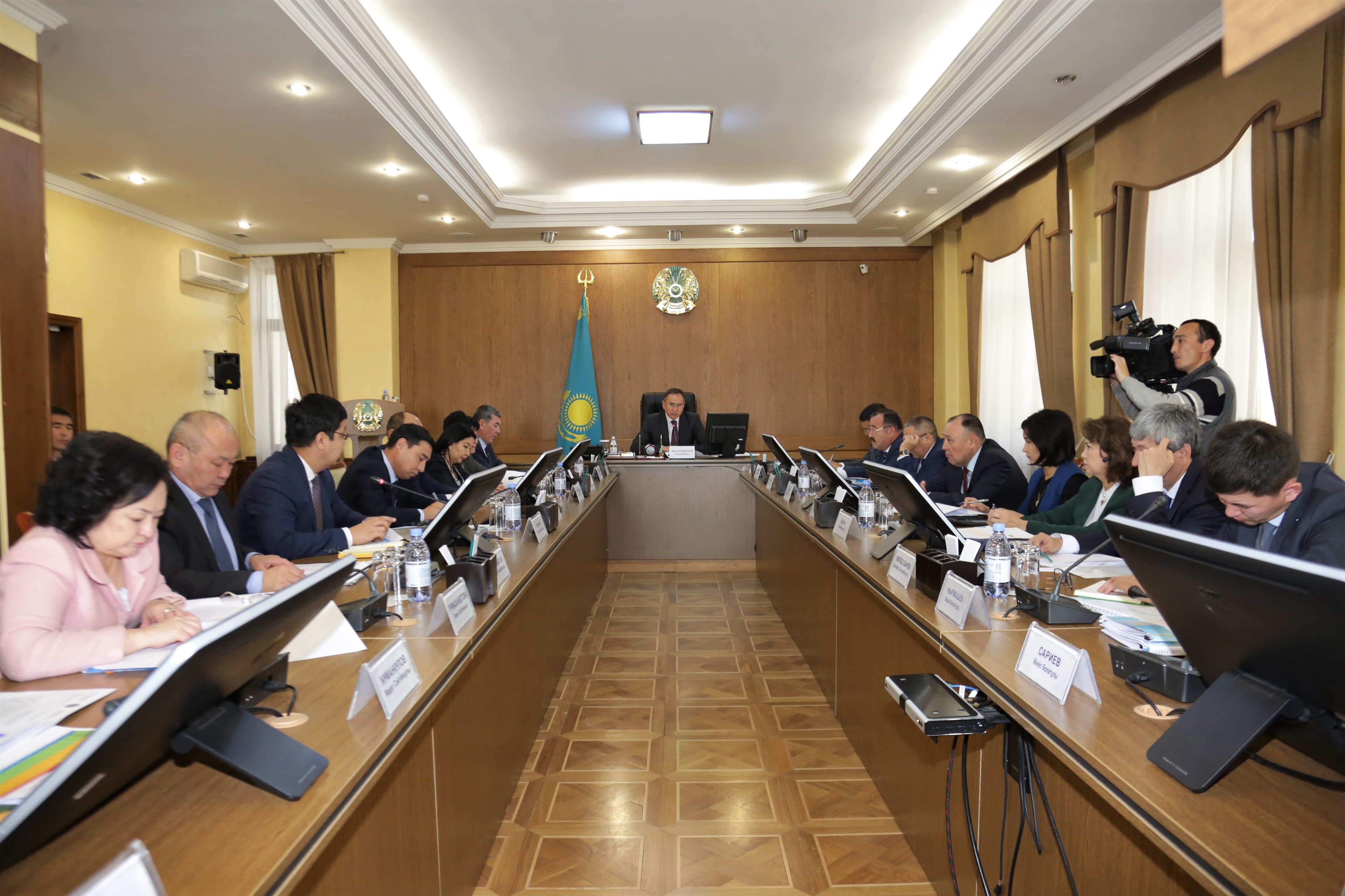 Жиынның күн тәртібінде бірқатар мәселелер қаралды. Әуелі облыс тұрғындарының тұрмыстық табысын жақсарту жобасының өңір бойынша атқарылу барысы сараланды. Жамбыл облыстық ауыл шаруашылық басқармасының басшысы Берік Нығмашевтің мәлімдеуінше, жоба аясындағы пилоттық он ауылдық округтер бойынша бекітілген жұмыс алгоритмі жоспарға сай орындалуда. Басқарма басшысы жобаға қатысушылардың өтінімдерін қабылдаудың күнделікті жоспары белгіленгенін айтып, аталған бағытта қарқынды жұмыстар жүргізіліп жатқанын жеткізді. Бүгінде тұрғындардан «Тараз» әлеуметтік кәсіпкерлік корпорациясына 1020 құжат өткізіліп, оның 947-сі қабылданған. Ал, 73 құжат қайта қаралуға жіберілген. Сондай-ақ, облыста сатып алынатын мал басының, тұқым мен тыңайтқыштың, жем-шөптің жоспарлы көрсеткіші мен құрылған кооперативтердің қажетті техникамен қамтылу жүйесі де ойдағыдай орындалуда. Өз сөзінде Асқар Мырзахметов Үкіметте бекітілген тиісті қаражаттың келер айдың басында түсетінін айта келіп, құжат қабылдау шаралары бірінші қарашаға дейін толығымен аяқталу керектігін ескертті. Ол бойынша жоспардан кешіккен бірқатар аудандардың жұмыстары сынға алынып, аудан әкімдеріне нақты тапсырмалар жүктелді. Әкім құрылған кооперативтердің техника базаларының орналасу аймағына көңіл бөліп, алдағы уақытта ауылдық округтер маңынан шағын қайта өңдеу зауыттарын салудың маңыздылығына да назар аударды. Ол бойынша жоспарлы жұмыстарды бүгіннен бастап жүйелей беру керектігін баса айтты.