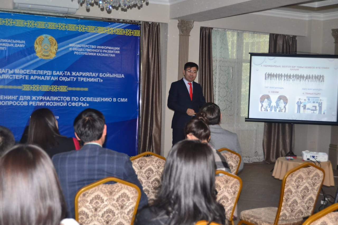 Одан кейін сөз тізгінін алған негізгі медиа-тренер Абылайхан Қалназаров бүгінгі зайырлы қоғамымыздың басты ерекшеліктерінің бірі – халықтың ұлттық және діни дәстүрлерінің жаңғыруы – Қазақстан мемлекеттілігінің қалыптасуымен тұспа-тұс келгендігін айтты.