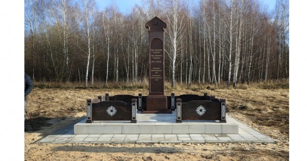Қасымов қаласының оңтүстігіндегі Уланова Гора ауылының жанында Яблоневый сад деп аталатын алаңқайдағы ескі Татар зиратына қойылған мемориалды тақтаны жасау үшін табиғи қоңыр түсті гранит пайдаланылған. Ескерткіштің биіктігі үш метр. Төбесіне доғал күмбез орнатылған.