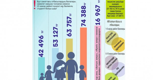 Биыл 1 қаңтардан бастап төрт және одан да көп баласы бар отбасыларға жеке жәрдемақы беріледі. Ескерерлігі, бұл санаттағы отбасылардың балалары кәмелет жасына толмаған немесе 23 жасқа дейінгі күндізгі оқу бөлімінің студенті болуы шарт. Бұл жәрдемақы отбасының кіріс деңгейіне қарамастан беріледі.
