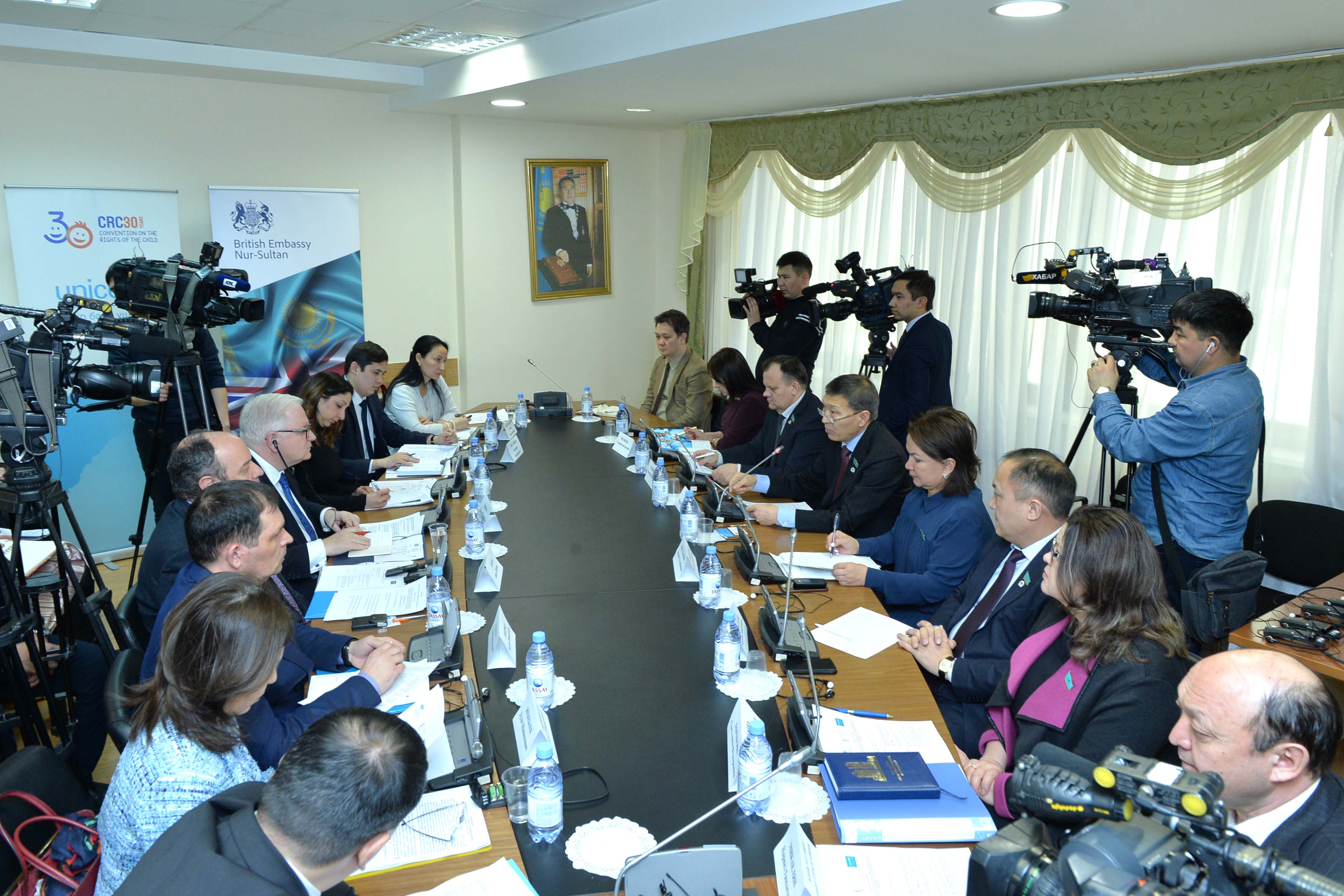 Кездесу барысында Комитет төрағасы Нұрлан Әбдіров БҰҰ (ЮНИСЕФ) Балалар қорына және Ұлыбритания Елшілігіне заң шығару барысында депутаттарға көрсетілетін көмек үшін алғысын айта отырып, заңнаманы жетілдіруде одан әрі ынтымақтыстыққа үмітін білдірді. Комитет хатшысы Светлана Бычкова заңды жүзеге асыру мониторингі барысында анықталған және шешуге тиісті мәселелер туралы хабарлады.