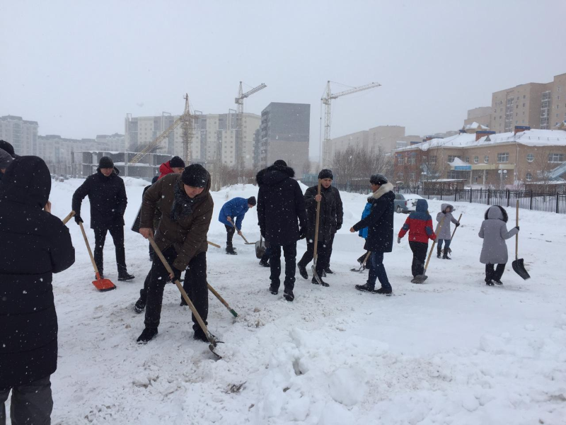 Сонымен қатар бұл іске жоғары оқу орындары мен колледж студенттері, білім беру және денсаулық сақтау мекемелерінің қызметкерлері де қатысып, олар өз ғимараттарының аумағын қардан тазартты.
