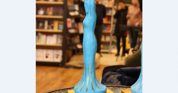«Алтын қаламды» табыстау рәсімінде сөз сөйлеген ұйымдастырушылардың бірі Кенже Жұманұлы аталған сыйлық бүгінгі заман әдебиетін дамытуға елеулі үлес қосқан қаламгерлерге берілетіндігін жеткізді. Әрі үздіктерге арналған мүсінді «Эльдани» қайырымдылық қорының сәндік-қолданбалы шеберханасында мүмкіндігі шектеулі жандардың дайындағанына көпшіліктің назарын аударды. Жеңімпаздарға сыйлық ретінде таңдап алынған мүсінде білім мен күш-қуаттың символы ретінде кітапты басынан жоғары көтерген әйел бейнеленген.
