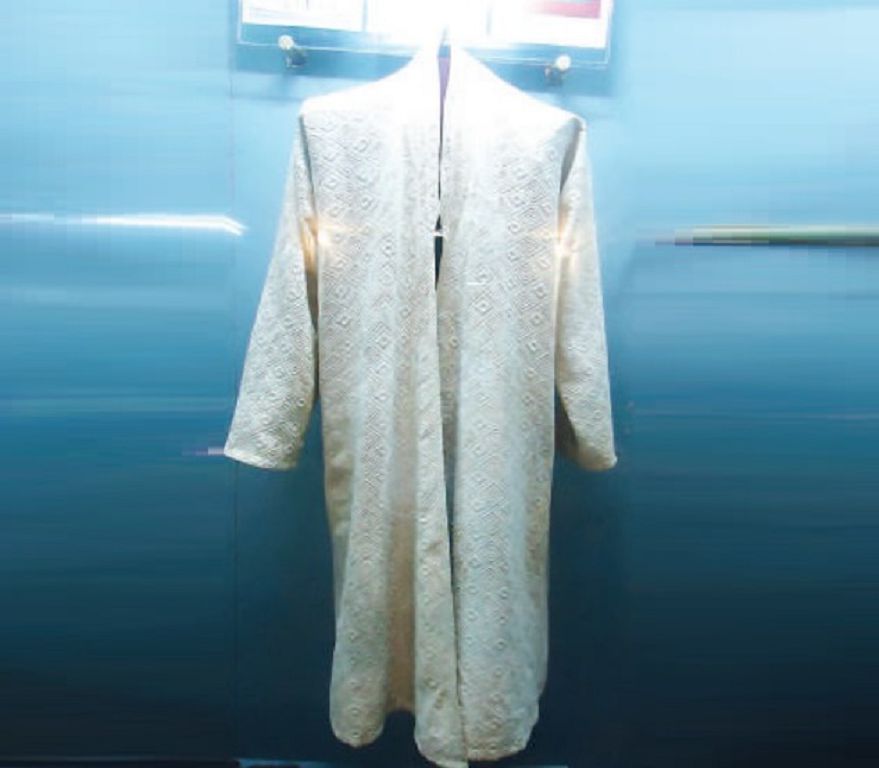 Аса құнды жәдігер саналатын шапан табиғи мақта-матадан бедерлі өрнек салып тігілген. Күні бүгінге дейін сапасын жоғалтпай, жақсы сақталған.
