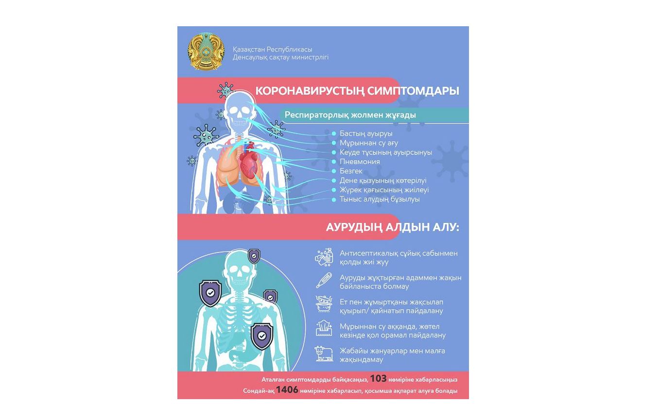 Қазақстанда вирус жұқтырғандар саны 35-ке жетті. Сонымен коронавирустың белгілері қандай? Одан қалай қорғануға болады? Вирусты жұқтырып алған жағдайда не істеу керек? Әлеуметтік медициналық сақтандыру қорының Алматы филиалы көпшілікті мазалаған осы және өзге де сұрақтарға жауап дайындады.