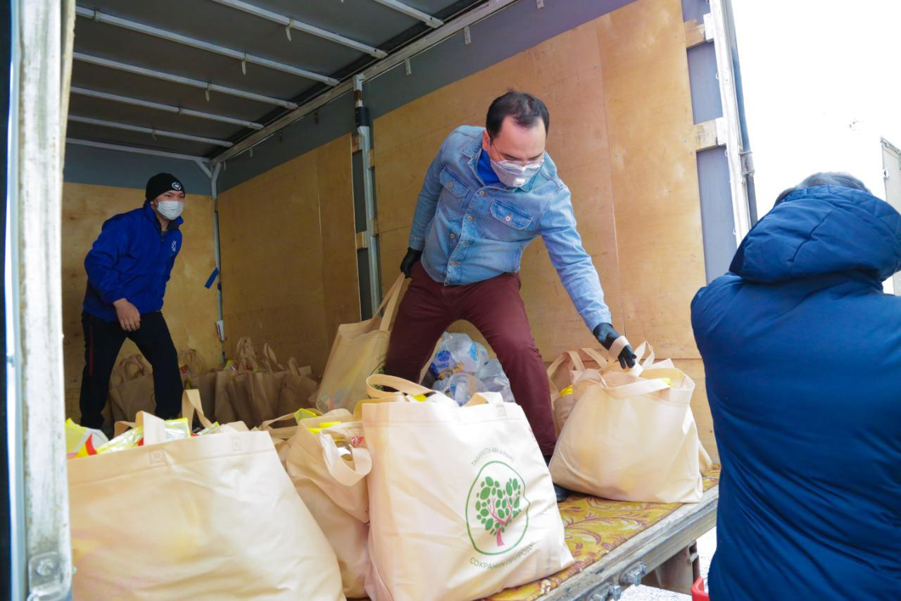 19 наурыздан бастап бүгінге дейін 800-ден астам отбасыға көмек көрсетілді. Карантин режимі кезінде шамамен 5000 отбасыға көмек көрсету жоспарланған. Азық-түлік себетін тарату азық-түлік себеті тізіміне енетін ең қажетті тауарларды теңдей үлеспен бөлуден басталады. Бұдан соң әр себет бірдей дайындалып, кейін әр мекен-жайға жеткізу үшін көлікке тиеледі. Волонтерлер азық-түлік себеттерін түгелдей таратуды өз мойындарына алады.