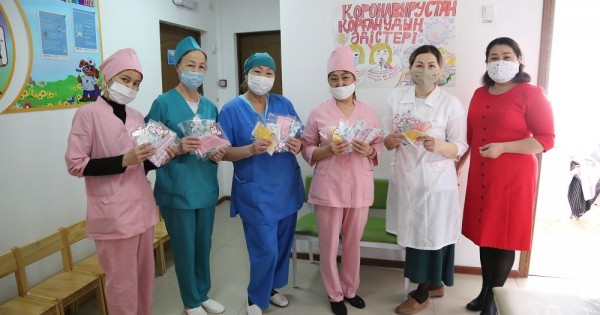 Мектеп әкімшілігінің ұсынысымен өнер пәнінің мұғалімі Алмагүл Жұмаева балабақшалардағы қызметкерлерге арнап 60 бетперде тікті. Қорғаныс құралдары әр балабақша мамандарына 20 данадан таратылды. Балабақша қызметкерлері мұндай қайырымдылыққа мәз болып, мектеп ұжымына алғыс білдірді.