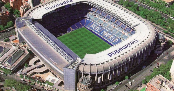 Даңқты «Реал» клубы мен Испанияның ұлттық құрамасы өнер көрсететін аталған спорттық нысан 1947 жылы салынды. Сол кездері құрылыс және жөндеу-жабдықтау жұмыстарына шамамен 1,7 миллион евро көлемінде қаражат жұмсалды. Бұған дейін де 81 044 көрерменге есептелген стадионда бірнеше рет реконструкция жүргізілді.
