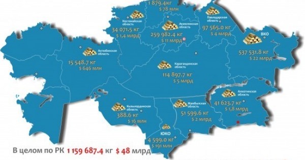 Нақты деректерге үңілсек, қазіргі таңда алтын қоры жөнінен АҚШ көш басында. Одан кейінгі орында Германия келеді. Үшінші сатыда Халықаралық валюта қоры тұр. Екі жарым мың тоннаға жақын алтын қоры бар Италия мен Франция мемлекеттері үздік бестікке енеді. Ал, Қазақстан алтын қоры бойынша әлем елдерінің алғашқы ондығына, алтын өндірісі бойынша үшінші ондығына кіреді. Елімізде 200-ге тақау алтын кен орны бар. Шамамен 48 миллиард долларлық алтын қорымыз(кен орындарындағы зерттелген алтын), 1 159 687,4 келі алтын бар екен. Осыған дейін ресмистатистика Қазақстанның алтын қорының картасын жасап шыққанын жария еткен-ді. Еліміздегі ең үлкен алтын қоры Шығыс Қазақстан облысы аумағында екен. Қор көлемі - 537,5 мыңкелі. Бұл - 22 миллиард доллар. Екінші орында Ақмола облысындағы алтын қоры - 259,9 мың келі, 11 миллиард долларға тең. Ал, Қарағанды облысында 5 миллиард доллар болатын 114,8 мыңкелі алтын қоры бар.