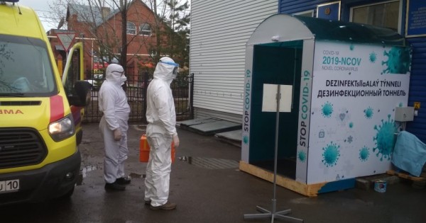 Қостанайдағы жедел жәрдем қызметі ғимаратының кіріберісіне  дезинфекциялық тоннель орнатылды.
