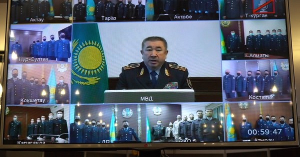 Карантин жағдайында қаһармандық көрсеткен тәртіп сақшыларын онлайн режімде өткен жиында Ішкі істер министрі Ерлан Тұрғымбаев марапаттады.