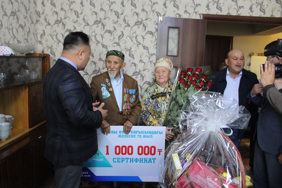 Ұлы Жеңістің 75 жылдығына орай бүгін Тараз қаласының әкімі Айтқазы Қарабалаев қала тұрғыны, Ұлы Отан соғысының ардагері Мүтәліп Ережепбаевтың шаңырағына барып, қарт майдангерді Жеңіс мерекесімен құттықтады. Айтқазы Қарабалаев бүгінде 95 жасқа келіп отырған қарияға облыс әкімі Бердібек Сапарбаевтың мерекелік ыстық лебізін жеткізіп, лайықты құрмет көрсетті. «Талас ауданынан 1944 жылы әскер қатарына шақырылып, Ұлы Жеңістен соң әйгілі Брест қамалын қалпына келтіруге қатыстым. Елге оралған соң Талас аудандық «Ленин жолы» газетінде алғаш жауапты хатшы, кейіннен редактор болып қызмет атқардым.