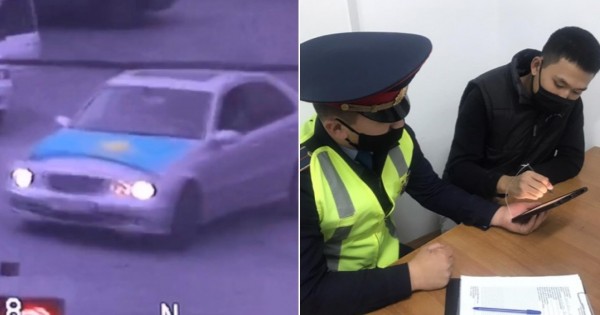 Мәселен, 21 жастағы жүргізуші дәл осылай ерсі қылық көрсетті. Ол «Mercedes Benz» көлігінің капотына Қазақстан Республикасының мемлекеттік Туын жауып алып, бірнеше рет айналу маневрін жасапты. Сөйтіп, жол ережесін бұзды. Жол жабындысын ластады.