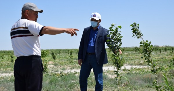 Аудан басшысы осыдан бірнеше жыл бұрын алма өсіруді қолға алған жеке кәсіпкер Санат Нұрмановтың алма бағында болды. Кәсіпкер 5 гектар жерге Голден Делишес және Ренет Симиренко атты элиталық тұқымнан 3350 түп алма көшетін егіпті.
