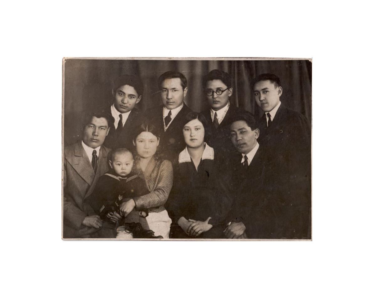 Суретте: (солдан оңға қарай): бірін­ші қатарда – Тайыр Жароков, Марат Ғадылше­ұлы, ..., жұбайы Зейнегүл Мадалиева, ...; екін­ші қатарда – Ғадылше Аяпбергенов, Асқар Тоқмағанбетов, Хамза Есенжанов, Батыр­бек Бірімжанов. 1934 ж. (Сурет Алма­ты қалалық тарихи-өлкетану музейінде сақтаулы.)
