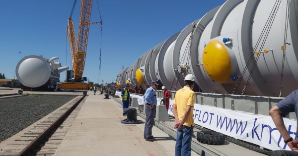 Енді міне, Атырау өзен портына бес жылдан кейін ірі габаритті жүкті қабылдай бастады. Бұл –газ-химия кешені үшін Оңтүстік Кореяда құрастырылған пропан сақтайтын резервуарлар.