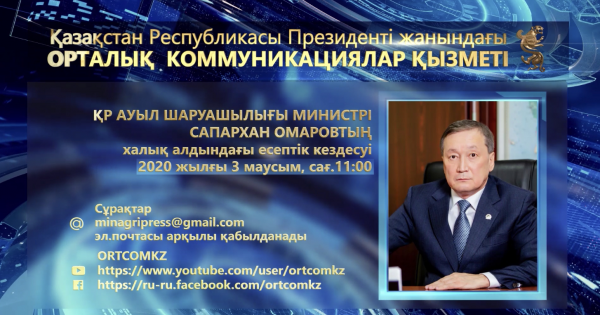 Еліміздегі карантин режимін сақтау шараларына байланысты министрдің есеп беру іс-шарасы ҚР Президенті жанындағы «Орталық коммуникациялар қызметі» РММ алаңында онлайн форматта өткізіледі.