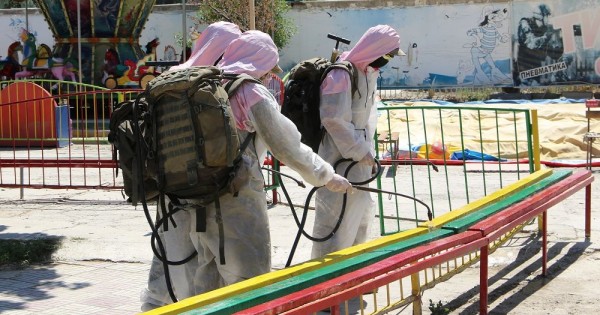 Қазіргі уақытта көп қабатты үйлердің аулалары, адамдар көп шоғырланатын жерлер, демалыс паркі, дүкендер мен сауда орындары және аялдамалар гипохлорид кальций ерітіндісі қосылған қоспамен дезинфекциялануда.