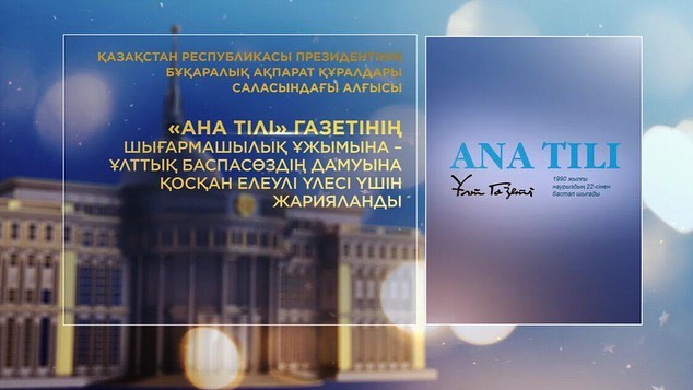 "Ана тілі" газетінің шығармашылық ұжымына – ұлттық баспасөздің дамуына қосқан елеулі үлесі үшін;