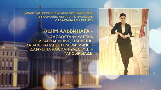 Әшім Альбинаға – "QAZAQSTAN" ұлттық телеарнасының тілшісіне, қазақстандық телевизияның дамуына қосқан үлесі үшін;