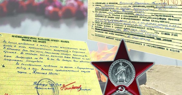«Қызыл Жұлдыз» ордені берілерде ұсынылған марапат қағазында: «Бөлімде артиллериялық қару-жарақтың есебін жүргізгенде ұйымдастырушылық қабілетін көрсетті, құралдардың жарамдылығын тікелей өзі қадағалады, тіпті ауыр ұрыс кезінде ату бекетіне үздіксіз оқ-дәрі жеткізіп, батареялар әрдайым қамтамасыз етіліп отырды» деп жазылған екен.
