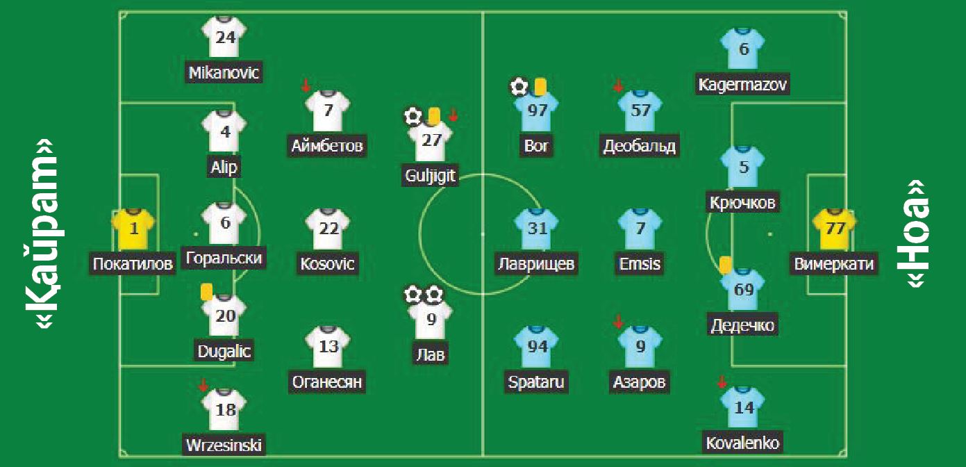 Гол соққандар: Бор, 8 – 0:1; Гүлжігіт Алықұлов, 12 – 1:1; Лав, 35 – 2:1; Лав, 70 – 3:1; Эсеола, 94 – 4:1.