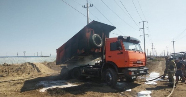 "Атырау қаласының "Береке" ықшамауданындағы "Шығыс" базарының маңында "КамАЗ" көлігі 10 мың вольттық электр желісіне соғылған. Жүргізуші жүкті түсіру үшін көліктің темір қорабын көтерген. Сол кезде қорап бағандар арасына тартылған электр желісіне тиген. Соның салдарынан көліктің артқы дөңгелегі мен қуат беру жүйесі өртенді", -деп хабарлады департаменттің баспасөз қызметі.