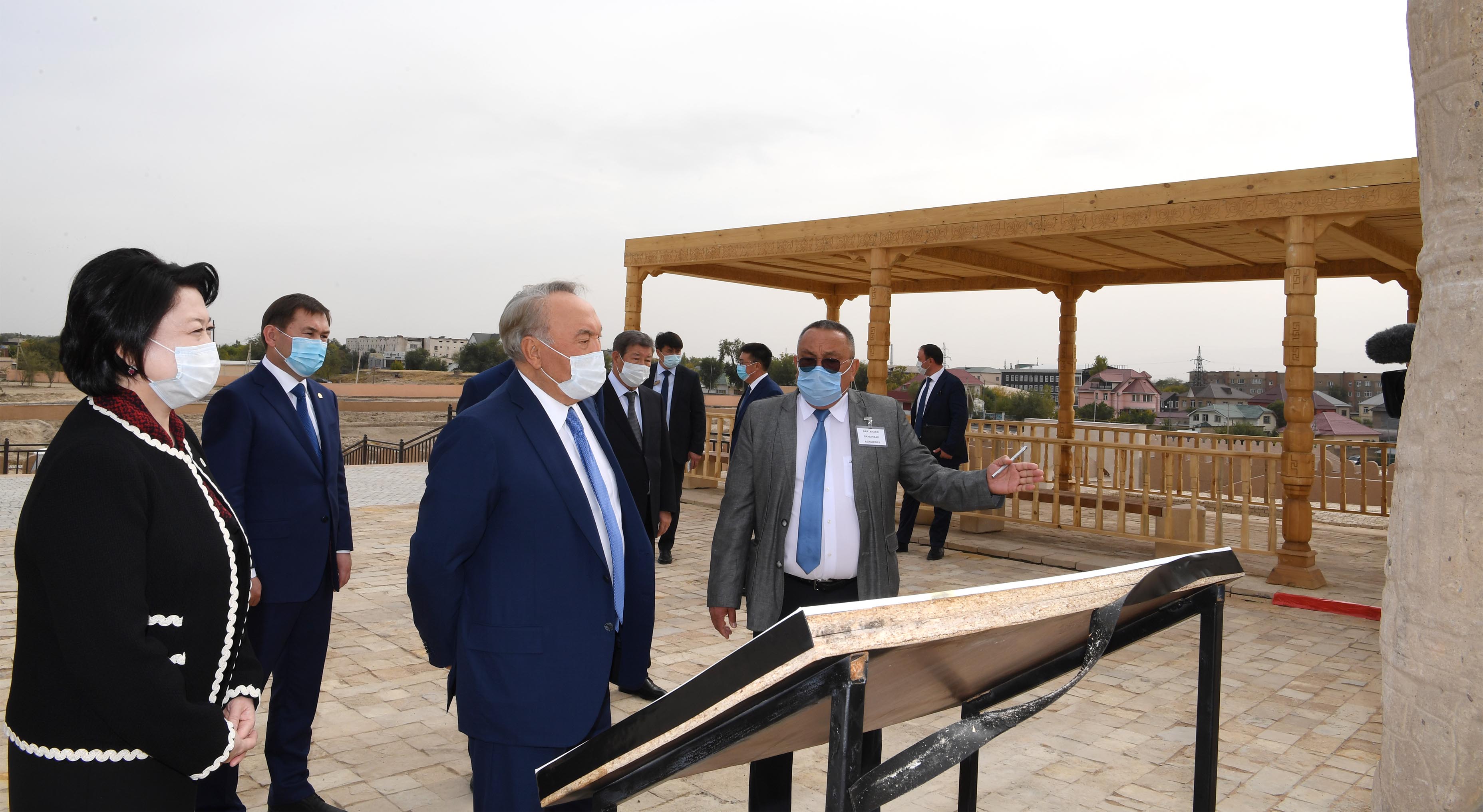 Көне қалашықты аралап көру кезінде Елбасы археологиялық жұмыстардың нәтижелерімен және мәдени кешенді одан әрі дамыту жоспарларымен танысты.