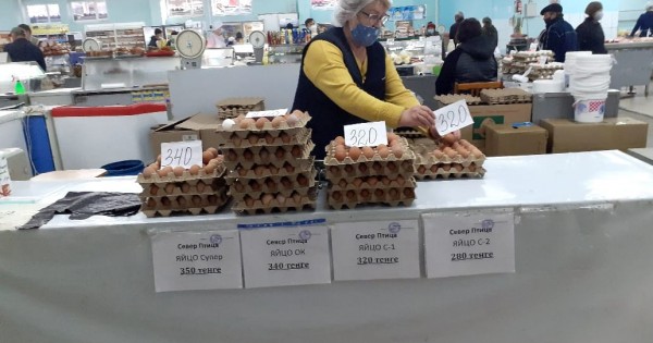 Қыркүйек айында сауда орталықтарында «Жас қанат» фабрикасынан шығатын 1-санаттағы 10 тал жұмыртқа 286 теңге тұрса, қазіргі бағасы 363 теңгеге жеткен. Қаланың орталық сауда базарындағы сатушылар да жұмыртқаның іріктелген, жоғары сұрыпты түрлері соңғы апта ішінде бірнеше рет құбылып, 20-25 теңгеге қымбаттағанын айтады.