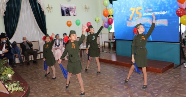 "Жасмин" би тобының өнерпаздары әскердегі күндерді еске түсіретін "Көк орамал" биінорындады. Үлкен экраннан Жеңістің 75 жылдық мерейтойына арналған құттықтаулар айтылып, соғыс жылдарын еске салатын бейнероликтер көрсетілді.