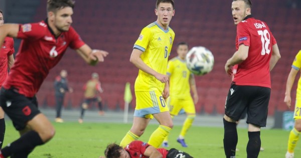 Алайда тез ес жиып үлгерген Албания футболшылары 16-минутта есеп ашты. Ледиан Мемушайдың айып алаңына асырған добына біздің қорғаушыларға қарағанда бірінші болып жеткен Сокол Чикаллеши баспен гол соғып, командасын есепте алға шығарды. Бұдан кейін де шабуылын тоқтатпаған албаниялықтар Стас Покатилов қорғаған қақпаны біраз торуылдады. Нәтижесінде Ардиан Исмайли 23-минутта стандартты жағдайда құрамасының екінші голын соқты. Алаң қожайындарының қақпаға бағыттаған добын жұдырығымен қағып жіберген Покатилов абайсызда допты қарсылас футболшының аяғына салып берді. Қақпашы мен қорғаушылардың қателігін тиімді пайдаланған Исмайли гол соғуда мүлт кеткен жоқ. Дәл осындай гол соғылатын қарбалас сәт екінші таймда да біздің қақпа маңында орын алды. Абырой болғанда ол жағдайда қорғаушы Нұралы Әліп допты қайтарып, қақпамызды 100 пайыздық голдан құтқарып қалды.
