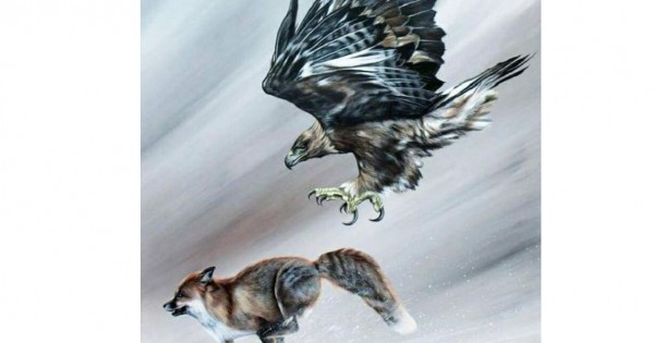 Қағушы құсбегінің айтуы бойынша жасырынып отырып құмалақты бір-бірден домалатады. Көбік қарды бүлкілдете домалаған құмалақтарды тышқан екен деп ойлаған түлкі үңгірден басын шығарады. Осы кезде құмалақты көбік қардан ұзатыңқырап домалатады. Бір сәтте құмалаққа атылған аш түлкіні дайын тұрған қыран таңнан іліп, тұмсығынан қайырған екен.