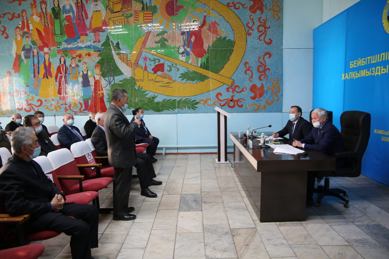 Жиында Үкімет басшысының орынбасары Ералы Тоғжанов пен Жамбыл облысының әкімі Бердібек Сапарбаев жергілікті тұрғындармен бірге өзекті мәселелерді және мемлекеттік бағдарламалардың іске асырылу барысын талқылады.