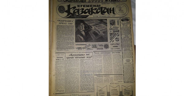 100 жылдық тарихы бар «Egemen Qazaqstan» газетінің 20 мыңыншы нөмірі тәуелсіздік таңына үш ай қалғанда, 1991 жылдың 28 қыркүйегінде шығыпты. Тарихи санның басты бетінде әуелі оқырманға арнау сөз айтылған, содан соң журналист Қали Сәрсенбайдың «Қасқалдақ» әні қалай айтылып жүр?» деген материалы басылыпты. Бұл туралы бірінші бетке берудің өзі батылдық болғаны анық. Газеттің оң жақ шетіндегі бағанада шетелдік БАҚ-тың маңызды жаңалықтарын берген. Соның ішінде «Неміс әуе толқыны», «Америка дауысы», «Азаттық» деген тақырыпшалар оқырман танымын құрлықаралық хабарлармен кеңейткенін көрсетеді. Басты беттің төменгі тұсында газеттің редакциясы «Осы нөмірден оқитындарыңыз» деп оқырманды толымды тақырыптармен қызықтырған.