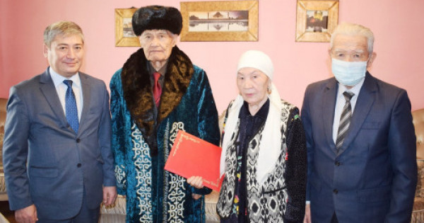 Аудан басшысы мерейтой иесіне шапан жауып, сый-құрмет көрсетті.