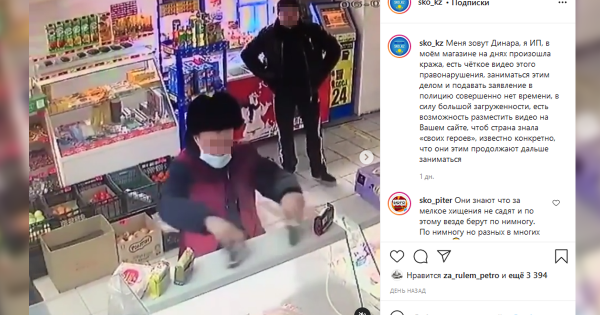 Дүкеннің қожайыны өзінің полицияға шағым жасауға қолы тимейтінін айтып, тек ұрлық процесін желіге салып қойған. Ұры жазаланбаса қолы біреудің затын алудан қалмайтыны белгілі. Желі қолданушылары осыны айтып шулап жатқан соң полиция дүкен иесінен арыз жаздырып алған. Сөйтіп, сұғанақтың ісін ҚК «Ұсақ ұрлық» бабы бойынша сотқа дейінгі тергеуге ілектірген. Егер ол бұл жолы да жазаланбай «екіжақтың келісуі болды» деген себеппен жазадан босатылса ол өзінің ісін жалғастыра берері сөзсіз. Келісім ұрының одан әрі тайраңдай беруіне мүмкіншілік тудырып отыр. Сұғанақты ерегестірмеуді ойлаған дүкен иелері ұсақ ұрлыққа қол сілтеп, «келісімге» келе салады. Сайып келгенде бұл қоғам тәртібінің бұзыла беруіне соқтырады. Ал полиция келісімге келген жәбірленушіні жазғырады. Одан да ұрының бәрін еркінсітіп, дәніктіріп қойған заңның осалдығын айтсашы...