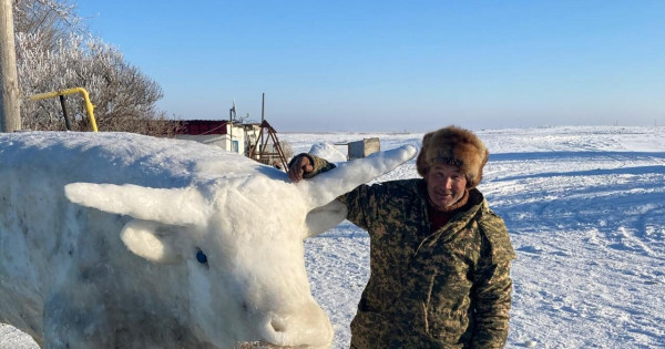 – Қазір балаларым өсті, бәрі отбасылы, жан-жақта тұрады. Ақтөбе қаласынан немерелерім жиі келеді. Әдетте қысқы, жазғы каникулды біздің қасымызда өткізетін ересек немерелерім ағаштан жасаған мүсіндерге қатты қызығып, қасымда жүріп үйренгісі келеді. Бес жастағы ең кішкентай немерем қаладан келгенде шарбақтағы қар мен мұздан соғылған мүсінді қызық көреді. Өз басым қыста немерелеріммен аққала соққанды ұнатамын. Екі-үш жылдан бері желтоқсанның соңғы түні Жаңа Жылдың символикалық бейнесін кескіндеп, мұздан мүсін оюды әдетке айналдырдым. Биылғы сиыр жылы елімізге тыныштық, құт-береке әкелсін, қиындықты бірге еңсеріп, жақсы күнге жетейік деген тілекпен үйдің ауласына өгіздің мүсінін мұздан ойып тұрғыздым, дейді Закир Абсалямов.