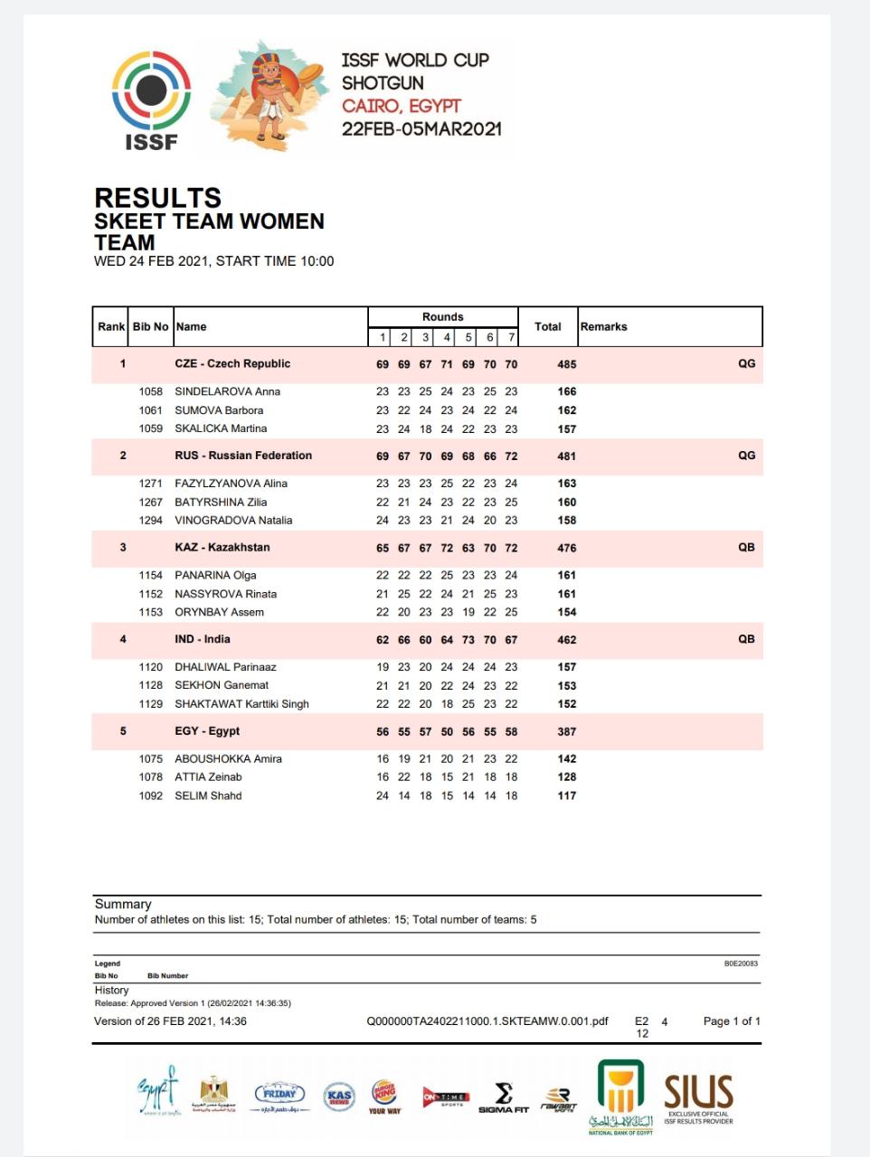 «Скит» жаттығуында қазақстандық спортшы қыздарымыз командалық есепте Шымкент қаласының спортшылары Панарина Ольга мен Насырова Рината және алматылық ару Орынбай Әсем 476 ұпаймен байрақты бесекеде Үндістан командасынан 14 ұпайға озып шығып, нәтижесінде қола медальді жеңіп алды.