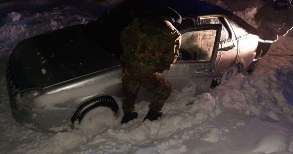 Мереке күні 23 сағат 49 минутта Орал қаласына қарасты Деркөл-Белес ауылдық жолында Кардон кентінің шамасында 3 жеңіл көлік қар құрсауында қалған екен. Бұл көліктерде 13 адам, оның ішінде 3 бала болған. Батыс Қазақстан облыстық Төтенше жағдайлар департаментрі қызметкерлерінің күшімен көліктер жолдың тазартылған бөлігіне шығарылды, ешкім зардап шекпеген.