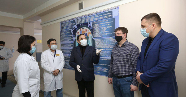 Телемедицина орталығында әкімнің орынбасары COVID-19 ықтимал және расталған жағдайлары бар пациенттерге кеңес беру және мониторинг жүргізу жұмыстарымен танысты. Операторлар пациенттің жағдайын бағалайды, емдеуді тағайындайды және науқастың электрондық картасына өзгерістер енгізеді. Орталық өткен жылдың қыркүйек айынан бастап жұмыс істейді.