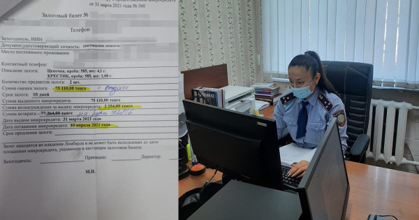 Шара барысында ол ұсталып, қаладағы ломбардтардың біріне алтын бұйымдарды тапсырған кепілдік билеті де табылды. Ол алтын алқа мен мойынға асатын кішкентай кресті 75 мың теңгеге тапсырған. Қазір бұйымдарды ломбардтан алу жоспарлануда. Ал күдіктіге қатысты «Ұрлық» бабы бойынша сотқа дейінгі тергеу жүргізілуде.