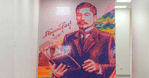 Университеттің гуманитарлық факультеті деканының орынбасары Азамат Азатовтың айтуынша, панно портретке 3 мың рубик текшесі кеткен. Салмағы – 450 кило, биіктігі – 3,4 метр, ені – 2,8 метр. Оны 6 оқушы 8 сағатта жасап шығыпты.