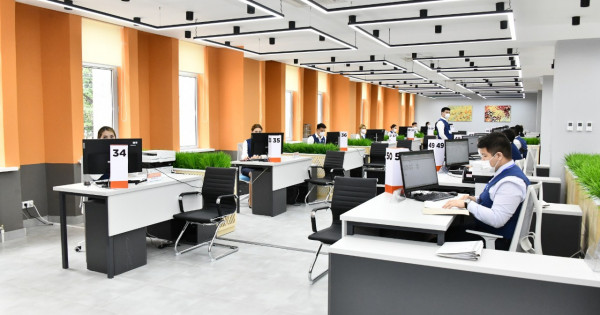 Екінші қабатта Алматының Жұмыспен қамту орталығының операция залы және бэк-офис орналасады, өтініш берушілер қолайлы жұмыс орындарын, ал жұмыс берушілер өздеріне керек жұмысшыларды таба алады.