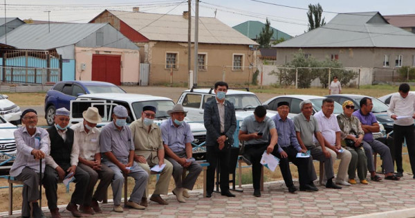 Карантин талаптарына сай ауылдық клуб алдында өткен кездесуге ауыл тұрғындары, ақсақалдар, жастар жиналды.